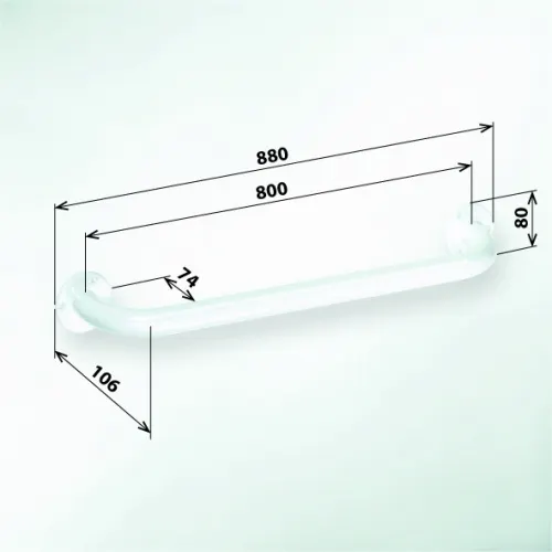 - Поручень: Белого цвета, длиной 800 мм, выполнен из нержавеющей стали.