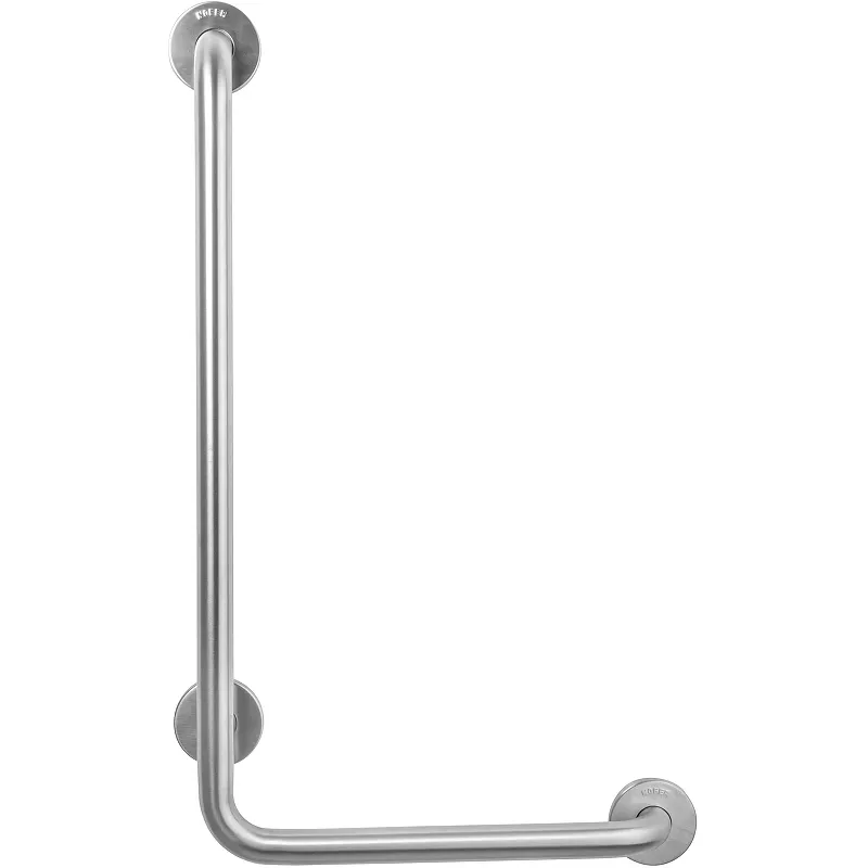 Поручень угловой Nofer 15158.S правый. Предназначен для людей с ограниченными возможностями.Характеристики: Цвет: матовая нержавеющая сталь. Материал: нержавеющая сталь AISI 304 толщиной 1,2 мм. Размеры (ШхВхД): 48х78х7 см. Толщина поручня: 3,2 см. Угол: 90 градусов. Максимальная нагрузка: 120 кг. Монтаж: на стену. В комплекте поставки: поручень угловой.