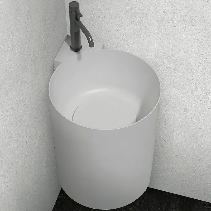 Раковина Abber Stein 42 AS2625 угловая.Характеристики: Цвет: белый матовый. Материал: искусственный камень. Накладка на слив из искусственного камня. Габариты (ШхВхГ): 422х500х422 мм. Отверстие под смеситель: 1. Форма: круглая. Монтаж: подвесной, в угол. В комплекте поставки: Раковина. Накладка на слив.