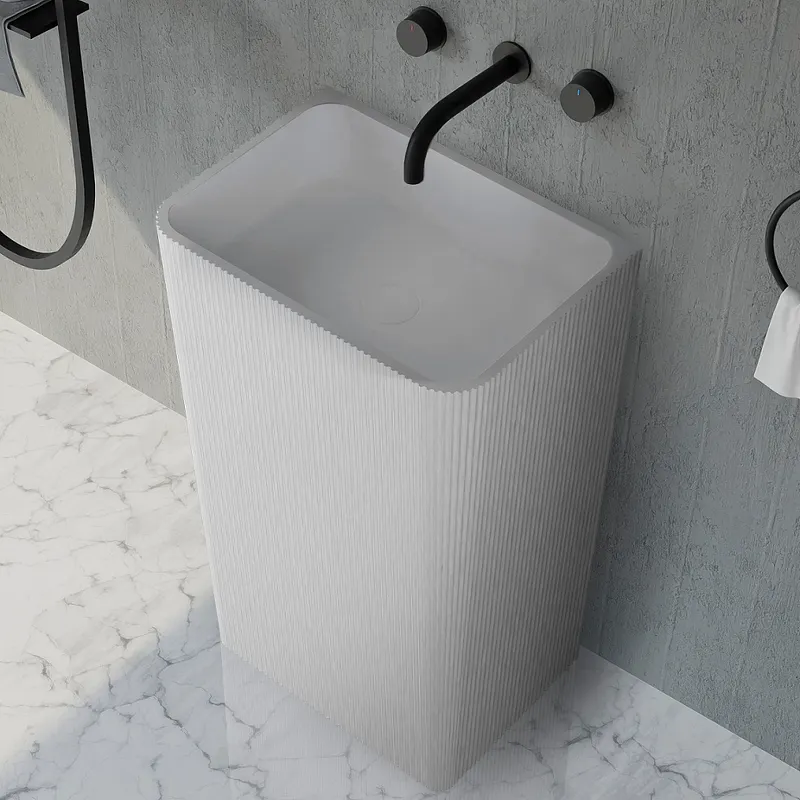 Раковина Abber Stein 50 AS2505-H.Характеристики: Цвет: белый матовый. Материал: искусственный камень. Размеры (ШхВхГ): 500х850х350 мм. Диаметр слива: 45 мм. Форма: прямоугольная. Монтаж: напольный. В комплекте поставки: Раковина.