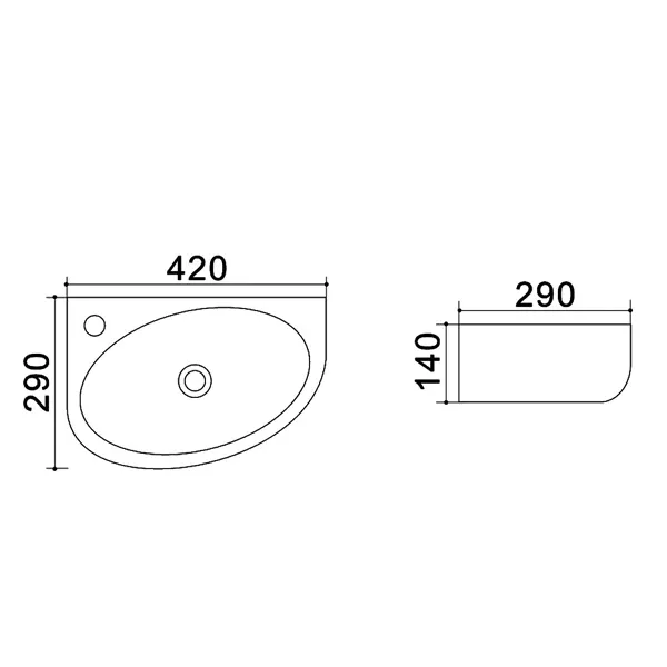 Раковина Azario 42х29х14, подвесная левая, белая (AZ-4519A) арт-AZ-4519-A