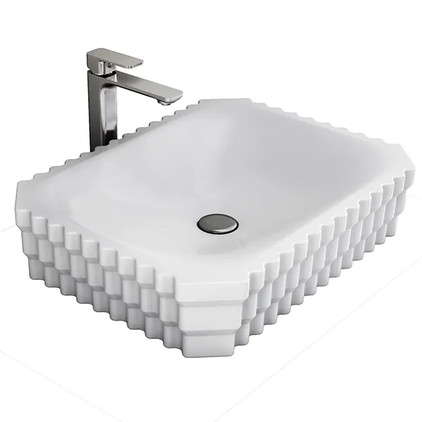 Раковина Bien Shine 61 SHLG06101FD0W3000 накладная на столешницу. Раковина Shine привносит в ванную стиль и индивидуальность своими ярко выраженными рифлеными гранями.Она сделает любой интерьер необычным и уникальным.Технические данные: Цвет: белый. Материал: фарфор. Форма: прямоугольная. Монтаж: накладной на столешницу. Размеры (ШхДхВ): 61х46,5х14 см. В комплекте поставки: чаша раковины.
