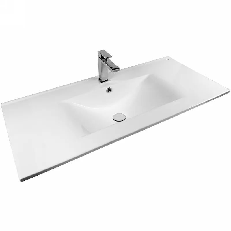 Раковина Bond 100 S05-1000.Характеристики: Цвет: белый глянцевый. Материал: фарфор. Размер (ШхВхГ): 1000х170х460 мм. Форма: прямоугольная. Отверстия под смеситель: 1. Встроенный слив-перелив. Диаметр слива: 4.5 см. Антигрязевое покрытие. Антибактериальное покрытие. Водоотталкивающее покрытие. Монтаж: на тумбу. В комплекте поставки: раковина.