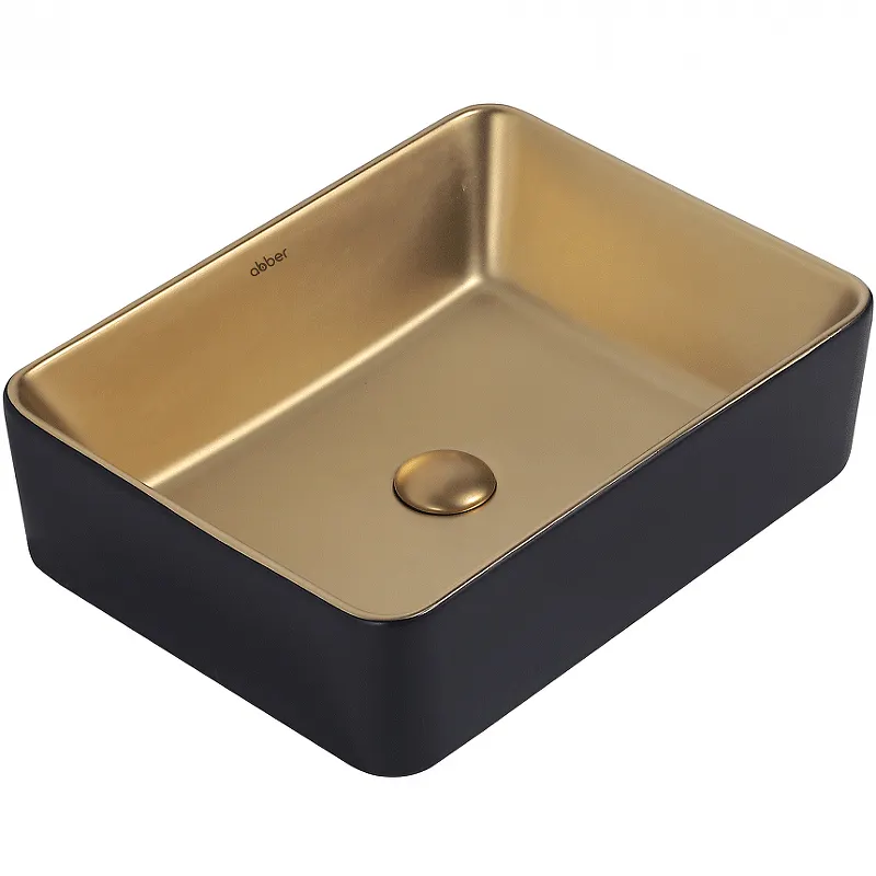 Раковина-чаша Abber Rechteck 49 AC2212BG.Характеристики: Цвет: золото матовое, черный. Материал: фаянс. Форма: прямоугольная. Размеры (ШхВхД): 485x135x375 мм. Монтаж: накладной на столешницу. В комплекте поставки: Раковина-чаша.