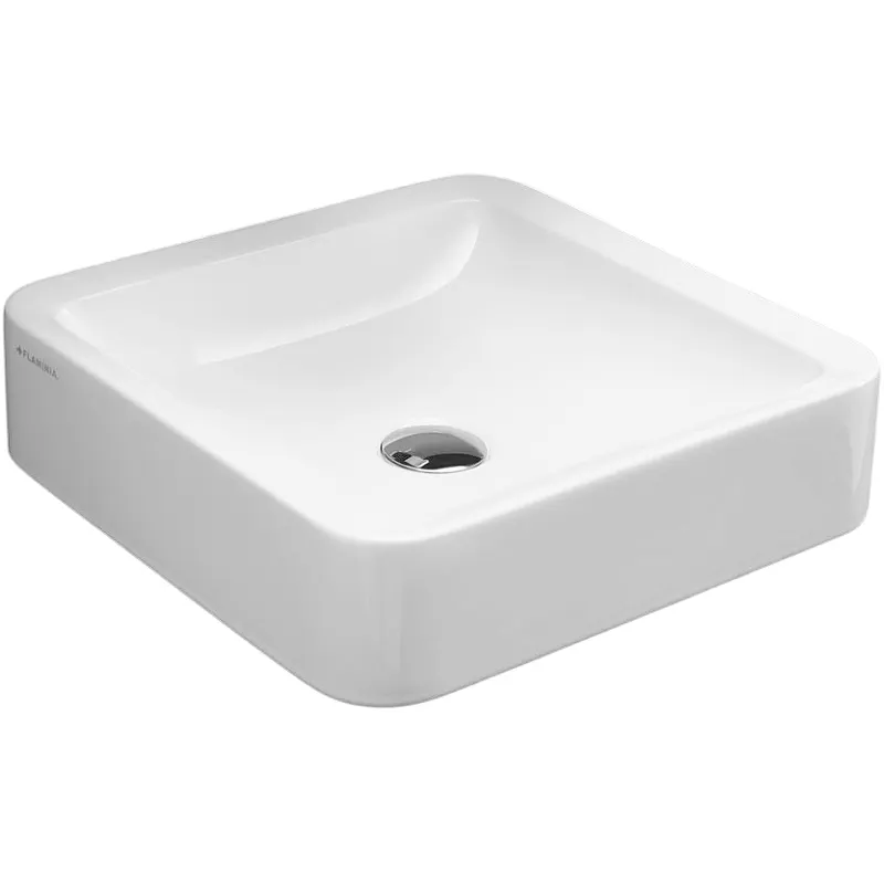 Раковина-чаша Flaminia Nile 40 NL40A.Характеристики: Цвет: белый. Материал: керамика. Поверхность: глянцевая. Размер (ШхДхВ): 400х100х400 мм. Диаметр слива: 45 мм. Форма: квадратная. Монтаж: накладной (на столешницу). В комплекте поставки: Раковина-чаша.