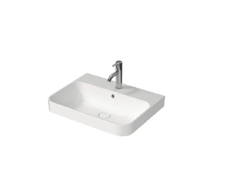 Раковина, Duravit, Happy D.2 Plus, ширина, мм-600, глубина, мм-460, высота, мм-195, отверстия для смесителя-отсутствуют, перелив-есть, тип перелива-открытый, материал-керамика, крепления в комплекте, цвет-белый, шлифованный вариант, с плоскостью под смеситель, задняя стенка неглазурованная, в комплекте-нажимной выпуск с керамическим покрытием
