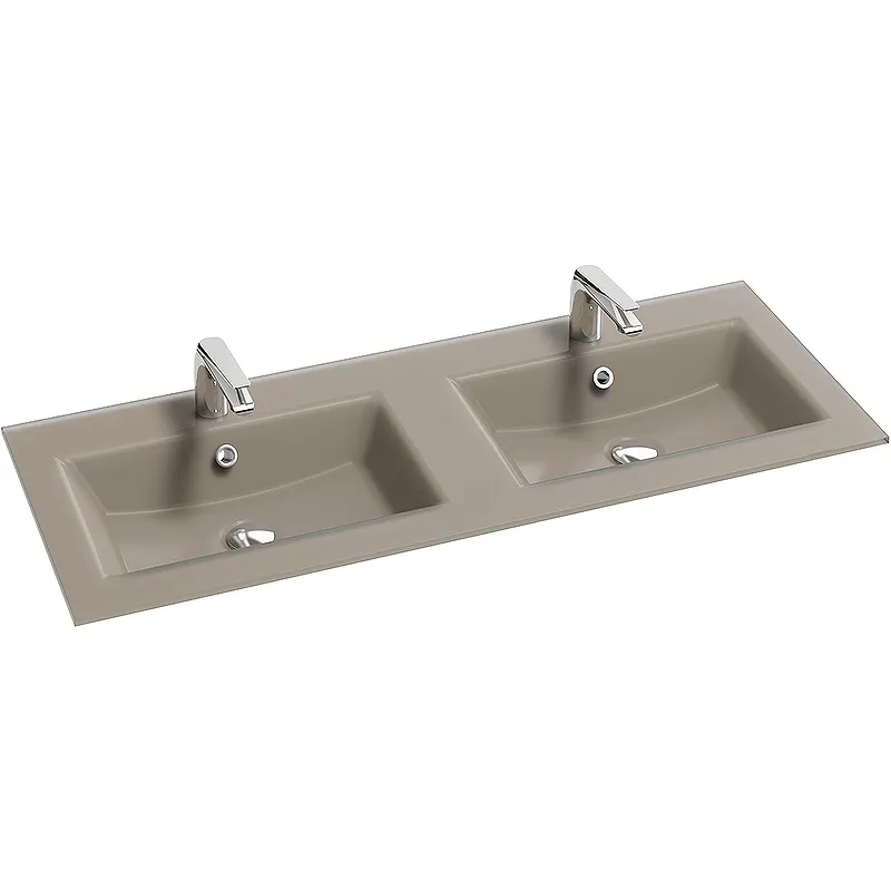 Раковина Jacob Delafon Sherwood EB1831RU-DE5 двойная.Характеристики: Цвет: базальт матовый. Материал: стекло. Габариты (ШхВхГ): 120,6х12х46,5 см. С переливным отверстием. Готовых отверстий под смеситель: 2. Монтаж: накладная на мебель. В комплекте поставки: раковина.