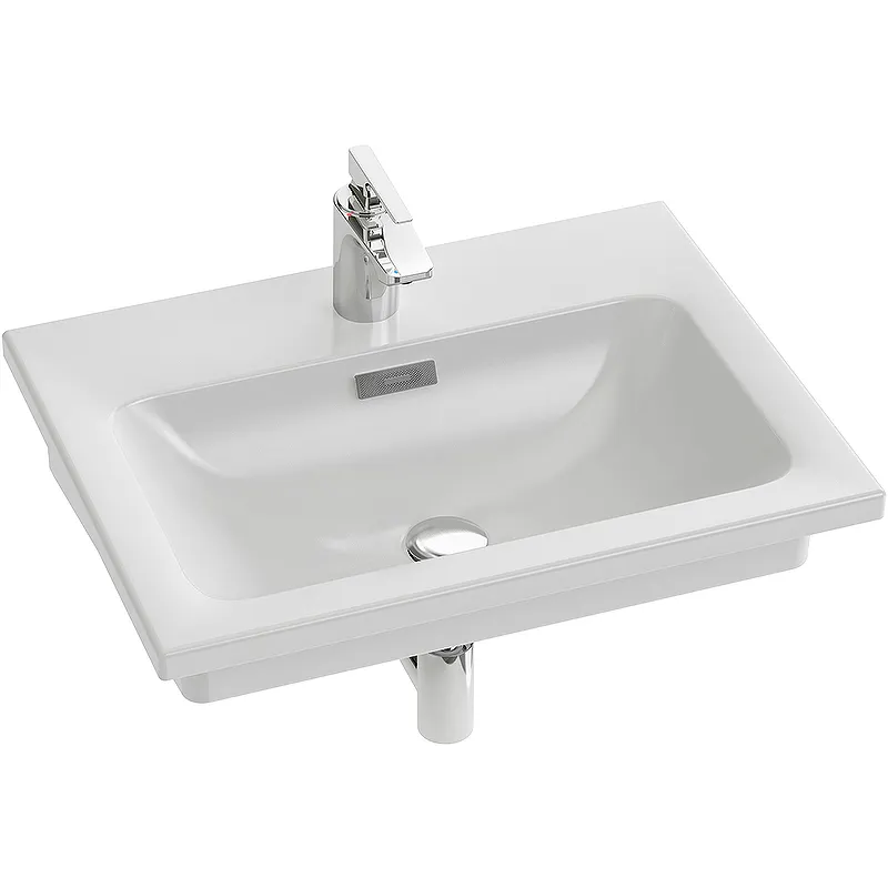 - Практичность и комфорт: Раковина с просторной площадкой под смеситель обеспечивает удобство использования и дополнительное место для хранения.