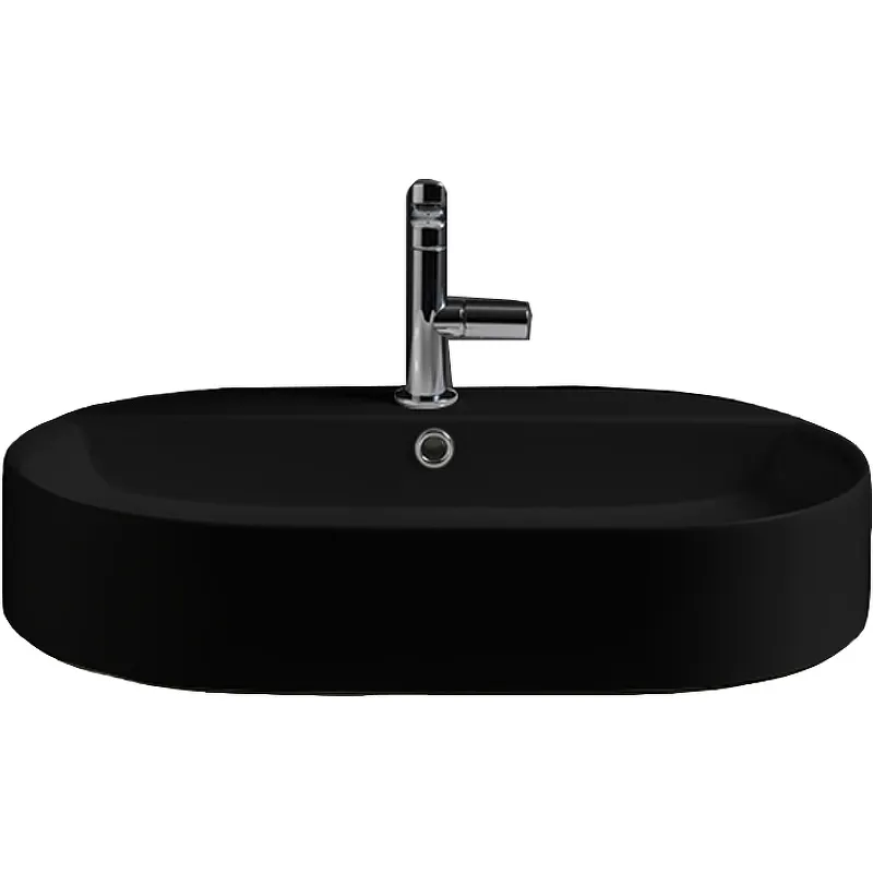 Раковина Kerasan Ciotola 65 028531*1.Характеристики: Цвет: черный матовый. Материал: фарфор. Форма: овальная. Габариты (ШхВхГ): 65х12х40 см. Монтаж: накладной. С переливом. С одним отверстием под смеситель. Диаметр слива: 45 мм. Расстояние от смесителя до сливного отверстия: 20 см. Рекомендованная минимальная длина излива: 18 см. Рекомендованная максимальная длина излива: 22 см. В комплекте поставки: раковина.
