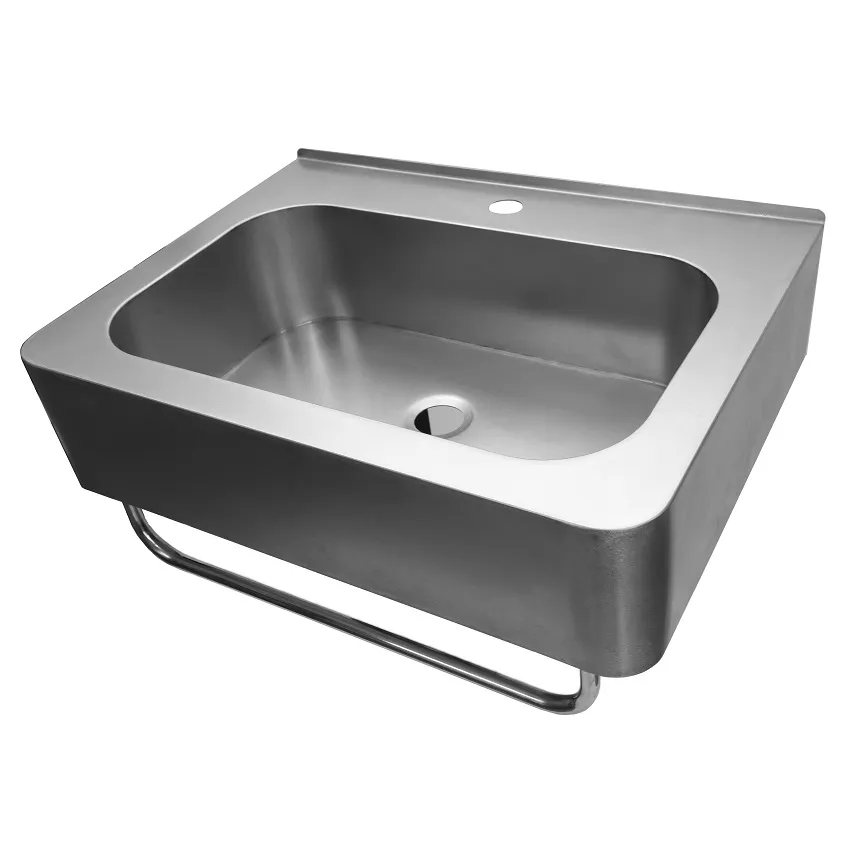 Раковина из нержавеющей стали AISI 304. Поверхность раковины шлифованная , матовая. Прямоугольная форма удобна для установки нескольких раковин в один ряд.