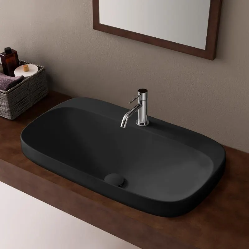 Раковина Scarabeo MOON встраиваемая сверху без перелива с одним отверстием цвет черный матовый с антибактериальным и грязеотталкивающим покрытием BIOKER 5512 49 арт-5512 49 BK