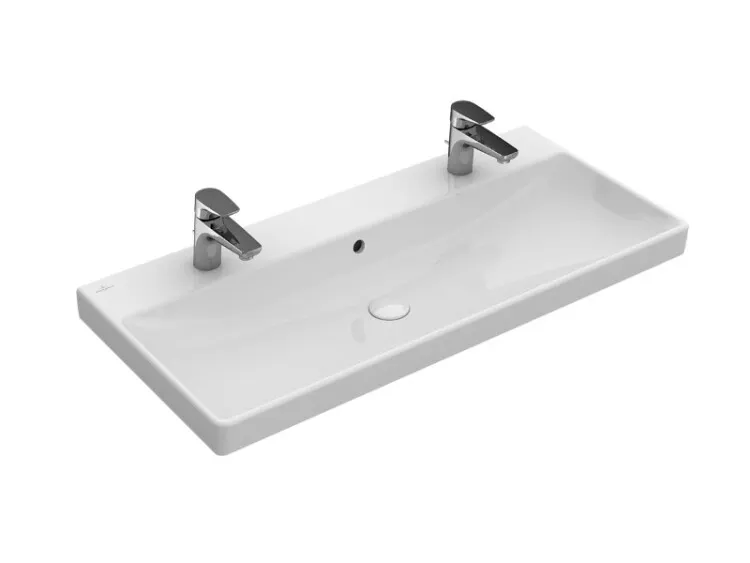 Раковина, Villeroy&Boch, Avento, ширина, мм-1000, глубина, мм-470, тип установки-на тумбу, отверстия для смесителя-2, перелив-есть, тип перелива-открытый, материал-санфарфор, цвет-альпийский белый арт-4156A401