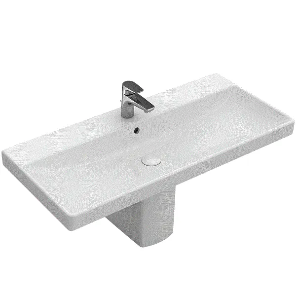 Раковина, Villeroy&Boch, Avento, ширина, мм-1000, глубина, мм-470, тип установки-на тумбу, отверстия для смесителя-одно, перелив-есть, декор-без декора, материал-керамика, цвет-альпийский белый арт-4156A501