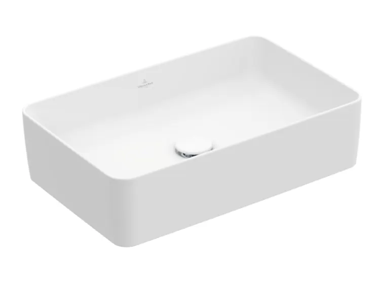 Раковина, Villeroy&Boch, Collaro, ширина, мм-560, глубина, мм-360, высота, мм-145, тип установки-накладной (настольный), отверстия для смесителя-отсутствуют, без перелива, материал-TitanCeram, вид грязеотталкивающего покрытия-CeramicPlus, крепления в комплекте, цвет-камень белый (Stone White) арт-4A2056RW