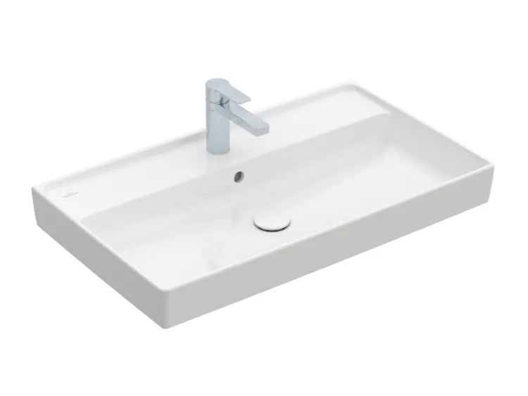 Раковина, Villeroy&Boch, Collaro, ширина, мм-800, глубина, мм-470, отверстия для смесителя-1 сквозное, 2 промаркированных, перелив-есть, вид грязеотталкивающего покрытия-CeramicPlus, цвет-альпийский белый, включен вырезной шаблон арт-4A3380R1
