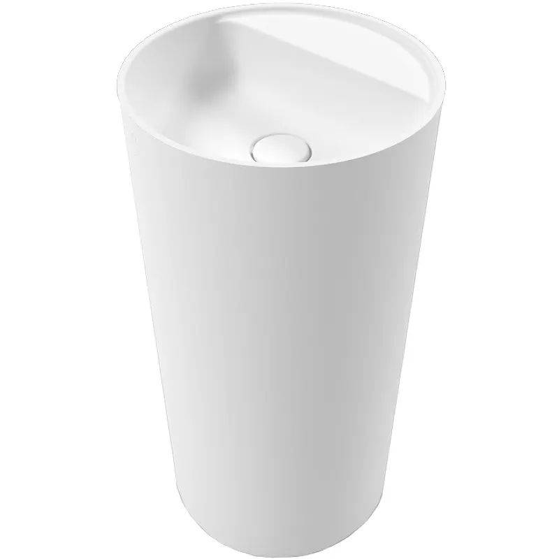 Раковина Whitecross Pantheon 43 0708.043043.200.Характеристики: Цвет: белый матовый. Материал: искусственный камень. Форма: круглая. Выпуск для сифона с декоративной накладкой. Размеры (ШхВхГ): 430х860х430 мм. Монтаж: напольный. В комплекте поставки: Раковина. Донный клапан.