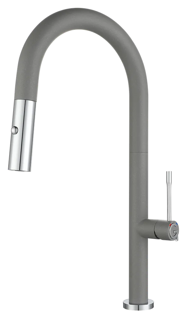 Смеситель для кухни с выдвижной лейкой Rivelato Asti — это современное решение для тех, кто ценит функциональность и стиль. Высокий U-образный дизайн и серое хромированное покрытие делают этот кухонный смеситель идеальным выбором для любой кухни.
