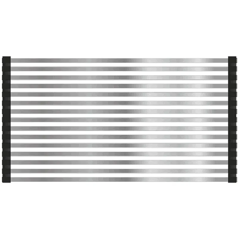 Ролл-мат Ulgran ROLL-01 для кухонной мойки.Состоит из 15 прутьев с квадратной формой сечения из высококачественной нержавеющей стали AISI 304, а также из термоустойчивого силикона.Характеристики: Цвет: хром. Материал: нержавеющая сталь. Размеры (ШхВхД): 440х9х305 мм. В комплекте поставки: Ролл-мат для кухонной мойки.