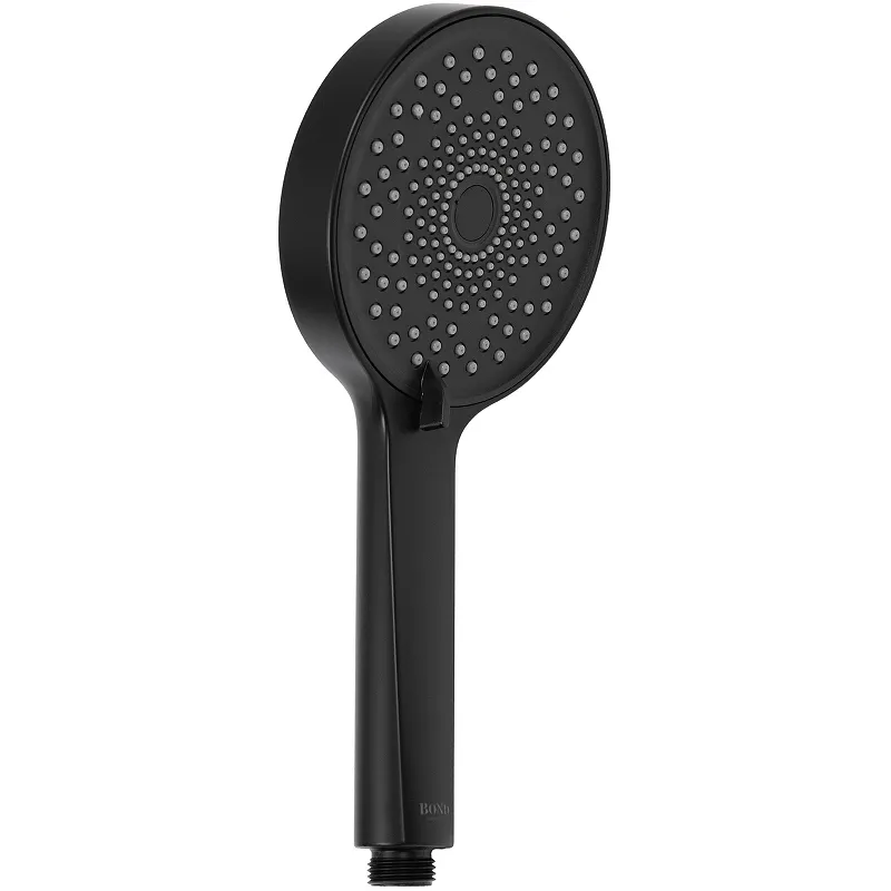 Ручной душ Bond Circle B01-9788.Характеристики: Цвет: черный матовый. Материал: PVC. Размеры (ШхВхД): 125х270х70 мм. Форсунками из термоэластопласта. Легкое очищение форсунок от налета. Количество режимов: 3. Переключение режимов ручного душа: флажковое. Стандарт подключения: G 1/2. В комплекте поставки: Ручной душ.
