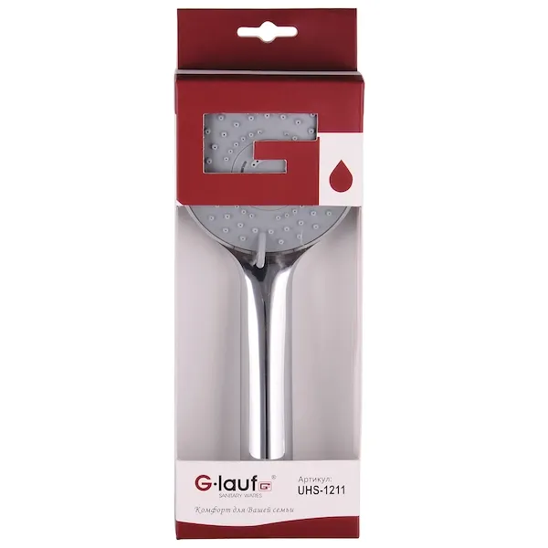 Ручной душ G-Lauf UHS-1211 превосходно впишется в любые интерьеры ванных комнат. Лейка выполнена из сертифицированных и качественных материалов. Хромированное покрытие гарантирует длительную износостойкость без царапин.