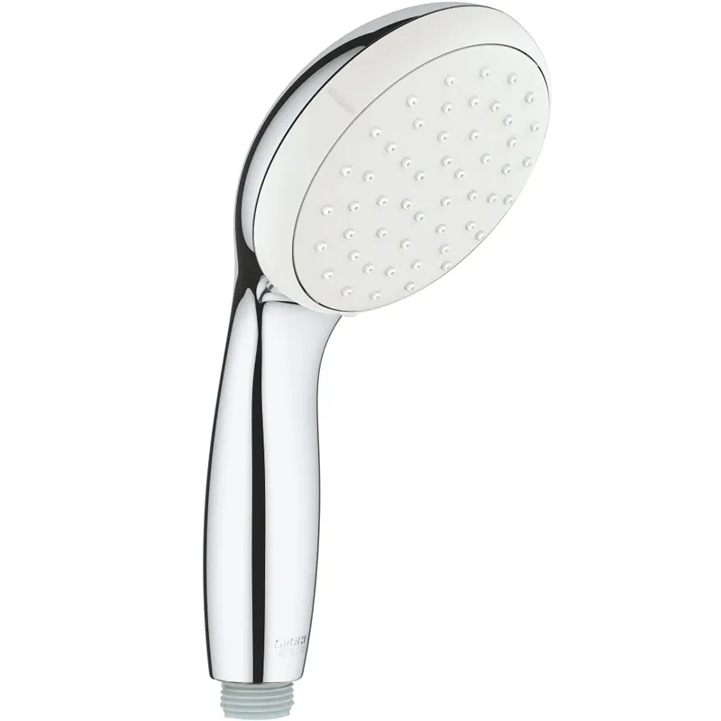 Ручной душ Grohe Tempesta New 27923001.Превосходно сочетается в интерьере современного стиля благодаря лаконичной конструкции и функциональности.Характеристики:Цвет: хром.Покрытие Grohe StarLight гарантирует длительную износостойкость без царапин с сияющей чистотой.Технология Grohe DreamSpray равномерно распределяет поток воды через все форсунки при любом режиме струи.Система термоизоляции водных протоков внутри ручного душа предотвращает нагревание его поверхности.Форсунки оснащены системой SpeedClean с легкой очисткой от известковых отложений.Водосберегающий механизм Grohe EcoJoy сокращает расход воды до 9,5 л/мин без ущерба для комфорта.Ручной душ на один вид струи: Rain (дождь).Силиконовое кольцо ShockProof, предотвращающее повреждение поверхности при падении ручного душа.Универсальное крепление, подходящее к любому стандартному шлангу.Подходит для проточных водонагревателей.Стандарт подключения: G 1/2.В комплекте поставки: ручной душ.