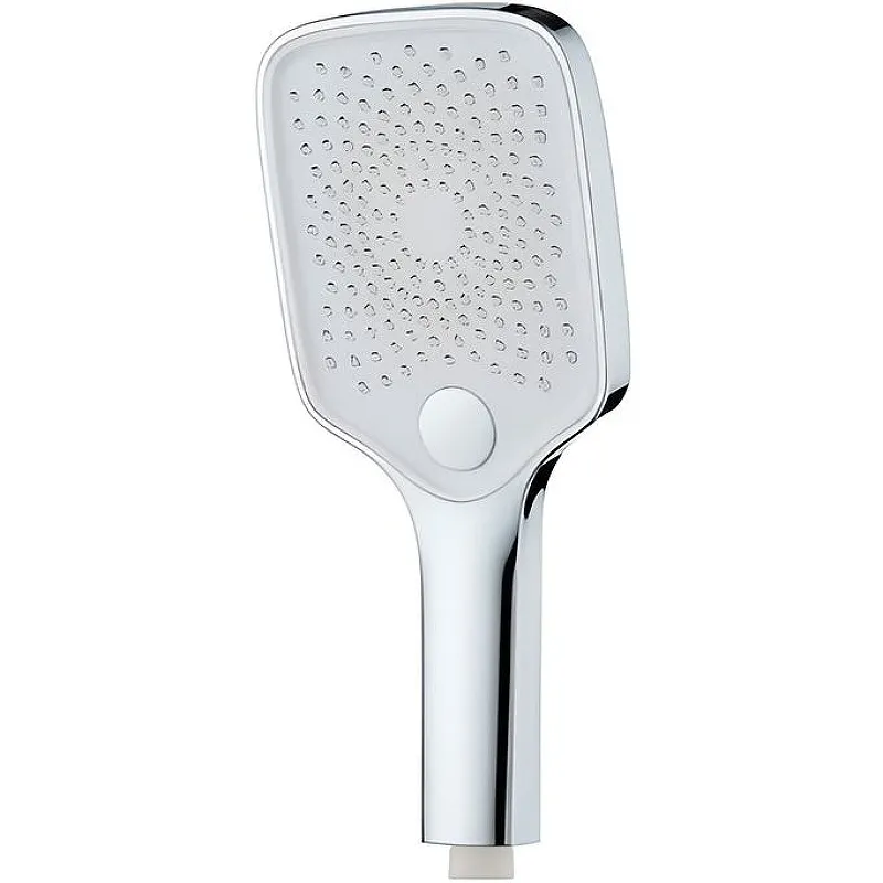 Ручной душ Melodia della vita Luxe MKP26314BL.Характеристики: Цвет: хром. Материал: ABS-пластик. Размеры (ШхВхГ): 105х130х50 мм. Количество режимов струи ручного душа: 3. Переключение режимов: кнопочное. Легкая очистка силиконовых форсунок от известкового налета. Стандарт подводки: G 1/2. В комплекте поставки: Ручной душ.