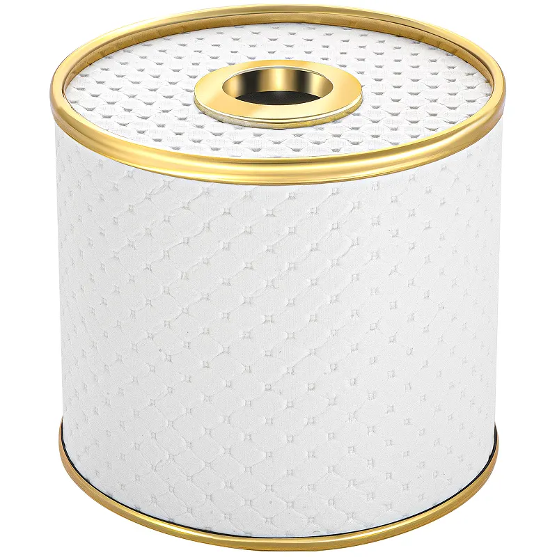- Современный дизайн салфетницы: идеально впишется в любой интерьер благодаря белому цвету и золотому канту.