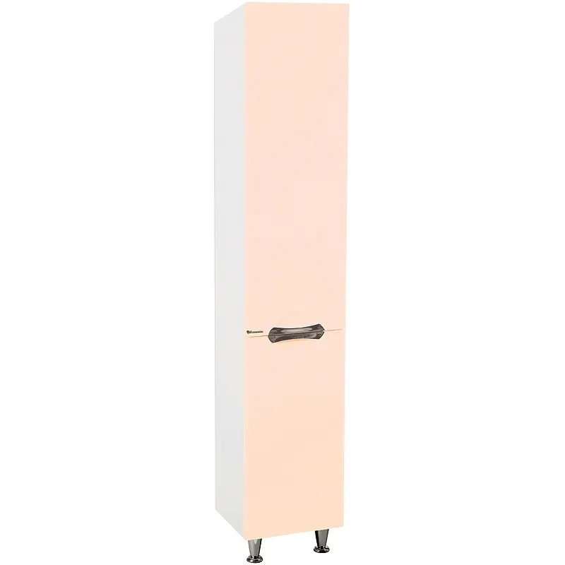 - Шкаф пенал бежевый белый выполнен из качественного ВЛДСП и МДФ, что гарантирует долговечность и устойчивость к влаге.