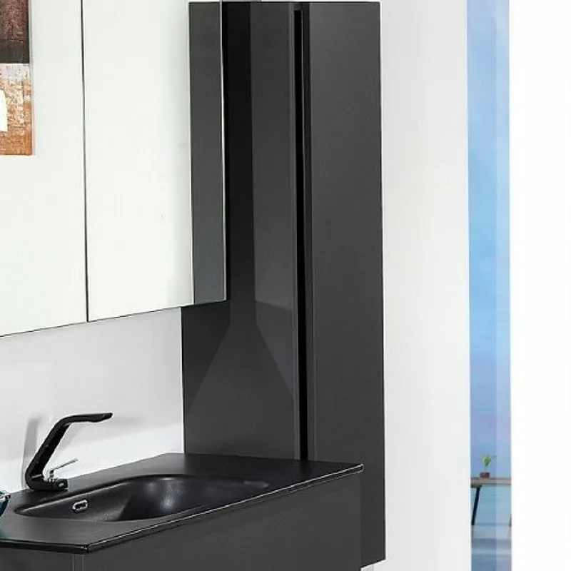 Шкаф-пенал Boheme Armadi Art Vallessi 35 836-A matt подвесной.Характеристики: Цвет: антрацит матовый. Материал: МДФ. Покрытие: акрил. Размеры (ШхВхГ): 350х1200х285 мм. Ориентация: универсальная. Монтаж: подвесной. Задняя внутренняя стенка покрыта экокожей. Система хранения: 1 распашная дверца, 3 стеклянные полки. Оснащение: механизм доводчика Hettich (плавное закрывание). В комплекте поставки: Шкаф-пенал.