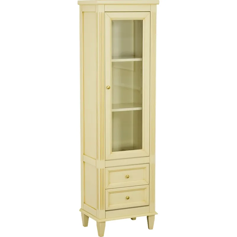 Шкаф пенал Migliore Kantri 50 26716 — это изысканный элемент мебели для ванной комнаты, выполненный в классическом стиле. Данный шкаф пенал идеально подходит для ванных комнат с повышенной влажностью, благодаря материалам из массива дерева и МДФ, а также прозрачному стеклу витража на дверце. Его песочный цвет и изящные ручки цвета золота придают интерьеру утонченность и шарм.
