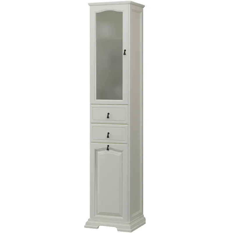 Шкаф пенал Opadiris Риспекто 40 L 00-00005836 с бельевой корзиной.Характеристики: Цвет: слоновая кость. Цвет фурнитуры: бронза. Материал: массив бука, МДФ, стекло матовое. Габариты (ШxВxГ): 43х198.2х38 см. Петли расположены слева. Механизм плавного закрывания дверей и ящиков. Система хранения: две стеклянные полки, два ящика, бельевая корзина. Монтаж: напольный, крепеж к стене. В комплекте поставки: Шкаф-пенал. Бельевая корзина.