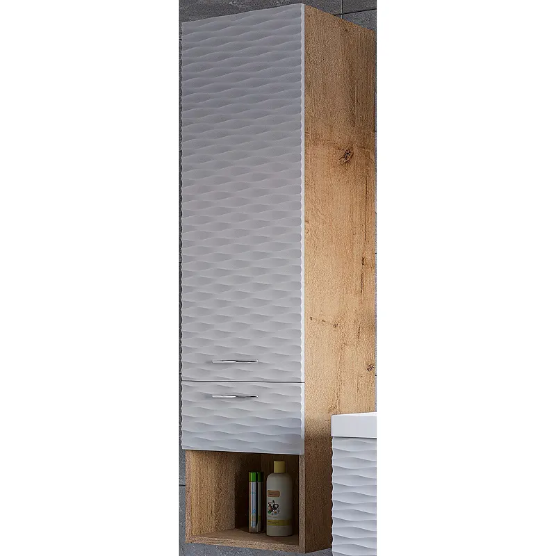 - Удобная система хранения: Оснащен распашной дверцей, выдвижным ящиком и открытой полкой — идеальное решение для ванной комнаты.