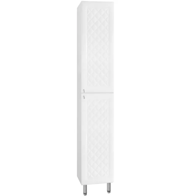 Шкаф пенал Style Line Канна 36 Белый глянец — идеальное решение для современных ванных комнат. Этот напольный пенал сочетает в себе стильный дизайн и практичность. Поверхность с объемными ромбами и глянцевое покрытие фасада делают его привлекательным элементом интерьера. Шкаф изготовлен из высококачественного МДФ и ЛДСП, что обеспечивает долговечность и устойчивость к влажности и бытовой химии.