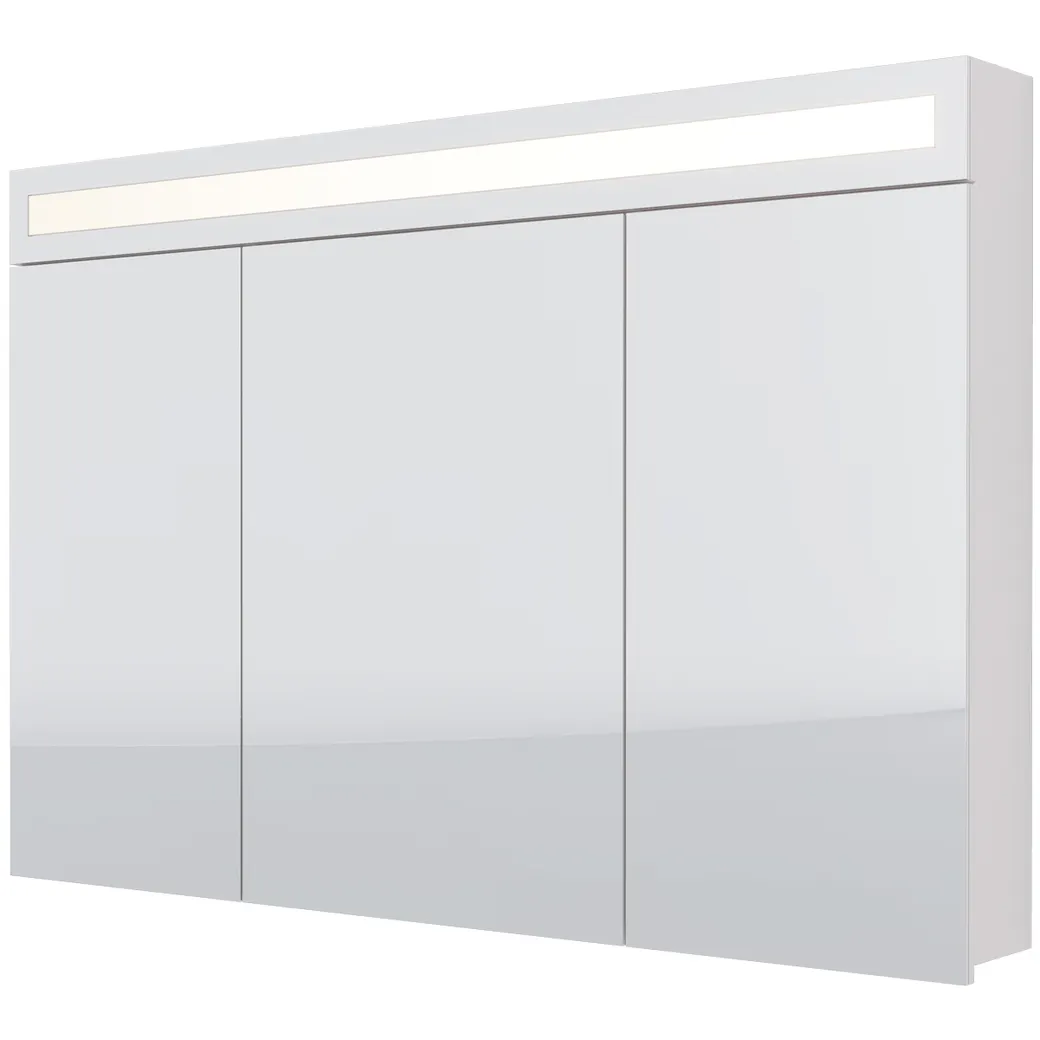 Шкаф зеркальный UNI, 120 см, 3 дверцы, 6 стеклянных полок, с LED-подсветкой и выключателем, белый