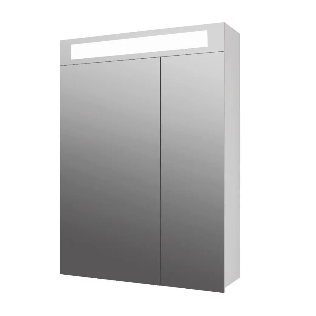 Шкаф зеркальный UNI, 60 см, 2 дверцы, 4 стеклянные полки, с подсветкой и выключателем, белый