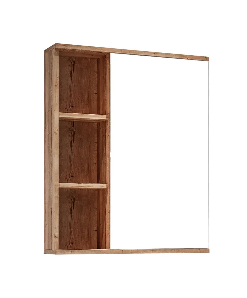 Шкаф-зеркало Форта 60 см - роскошная текстура и натуральный цвет дуба придают зеркалу сочетание современного дизайна. Открытые полки обеспечивают доступ к аксессуарам, а пространство за распашной зеркальной дверцей с механизмом плавного закрывания, разделенное полочкой, позволит хранить бытовые принадлежностей. Шкаф-зеркало имеет универсальную ориентацию: верх и низ шкафа можно менять местами, а дверца может открываться как влево, так и вправо. Зеркальный шкаф выполнен из влагостойкого ЛДСП, устойчивый к перепадам температур и высокой влажности. Подвесы для крепления шкафа - в комплекте.