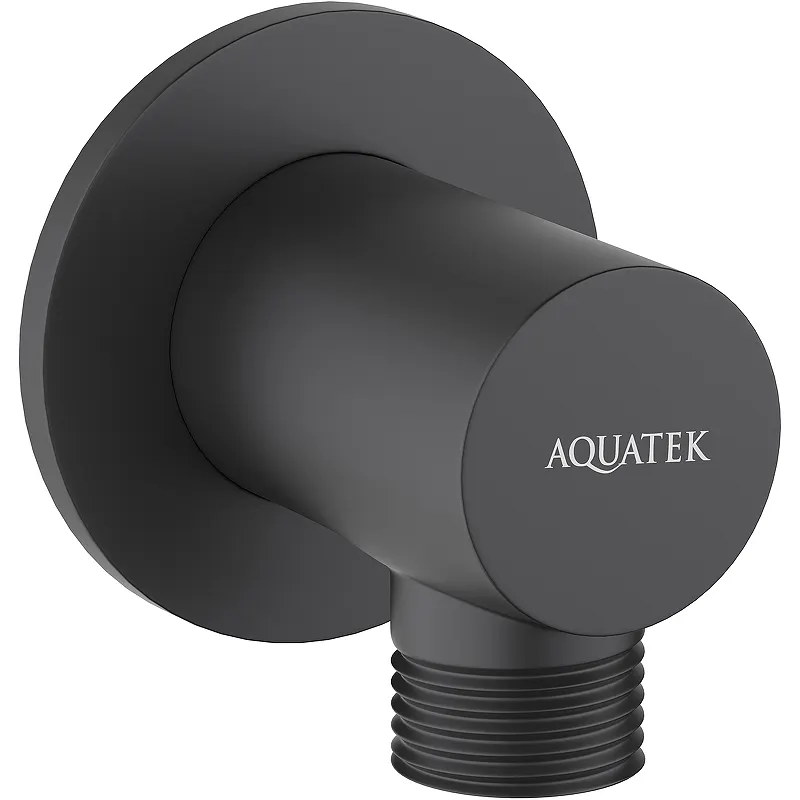 Шланговое подключение Aquatek AQ2456MB.Характеристики: Цвет: черный матовый. Материал: латунь. Материал декоративной накладки: нержавеющая сталь. Размер (ШхВхД): 55х55х45 мм. Стандарт подключения: G 1/2. Монтаж: на стену. Комплект поставки: Шланговое подключение. Декоративная накладка.