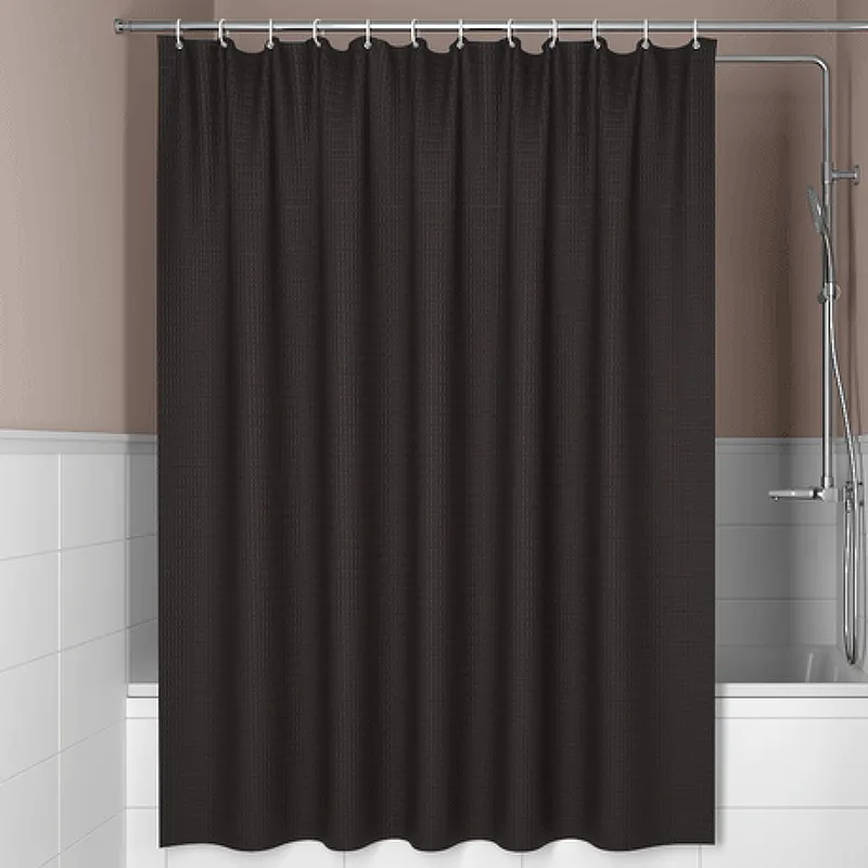 - Простота ухода: Шторку можно стирать в стиральной машине и она не требует глажки, что значительно облегчает уход за ванной комнатой.