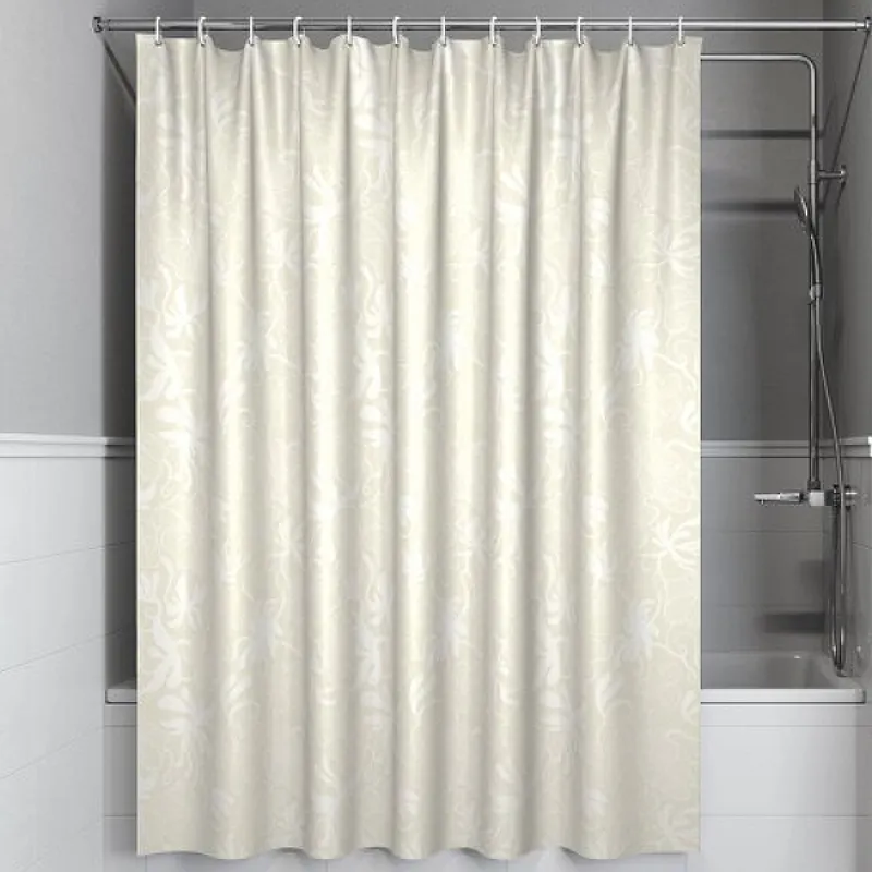 Шторка для ванны Iddis Basic B59P118i11 180х180.Характеристики: Цвет: бежевый. Материал: полиэстер. Тип рисунка: цветы. Количество крючков: 12. Монтаж: подвесной. Водоотталкивающее покрытие. В комплекте поставки: шторка, крючки, кольца.
