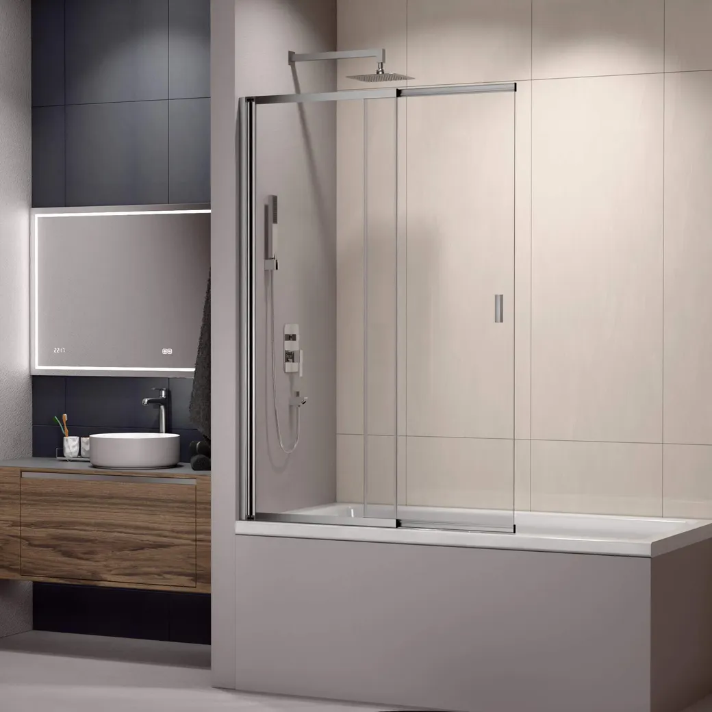 - Эстетичность и универсальность: Хромированный профиль и прозрачное стекло подходят к любому декору.