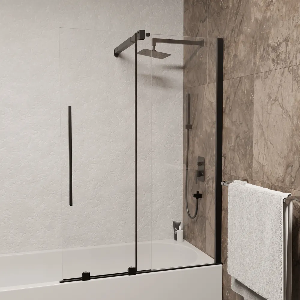 - Эстетичный дизайн: Черный профиль добавляет элегантности, делая данную шторку на ванну стильным элементом интерьера.