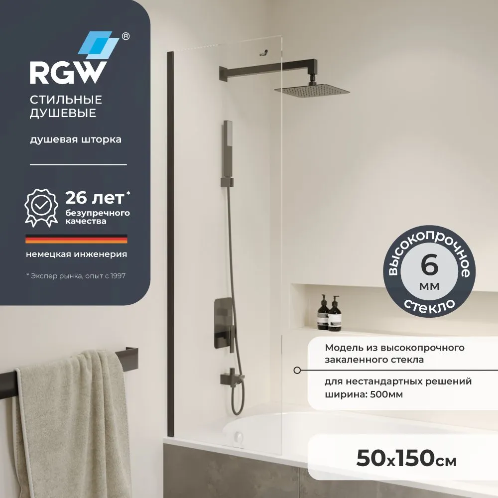 Преимущества Шторка на ванну 50*150 RGW SC-056-B Чёрный/Прозрачное/6 мм (Easy)