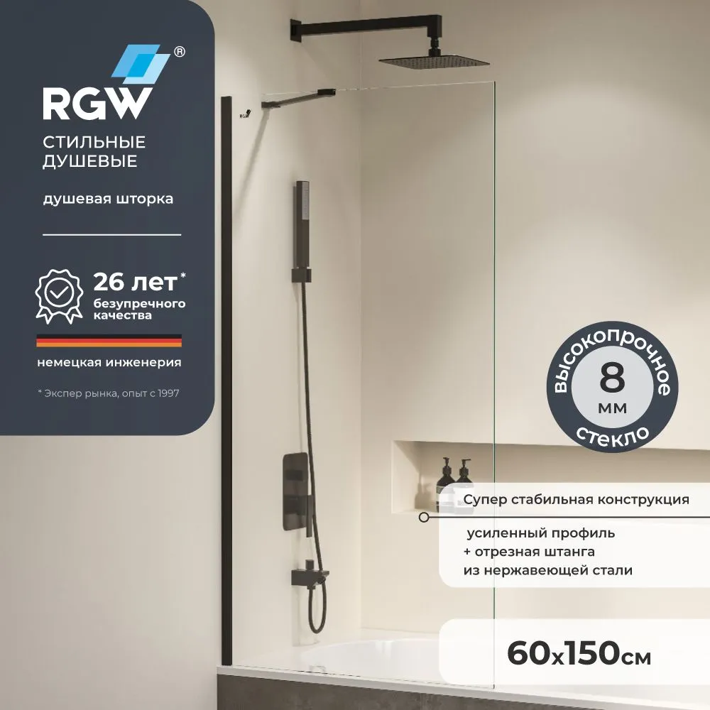 Шторка на ванну 60*150 RGW SC-151-B Чёрный/Прозрачное/8 мм (Easy)