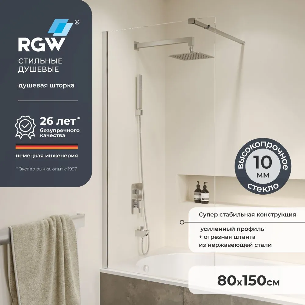 Шторка на ванну 80*150 RGW SC-052 Хром/Прозрачное/10 мм (Easy)