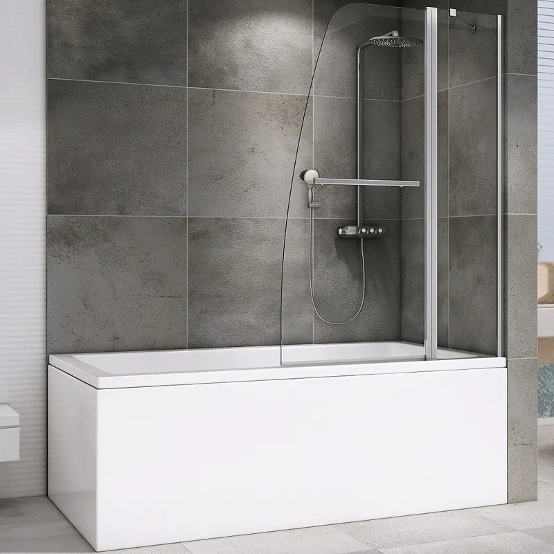 - Стеклянная шторка на ванну: Изготовлена из прочного закаленного стекла толщиной 6 мм, что гарантирует долговечность использования.