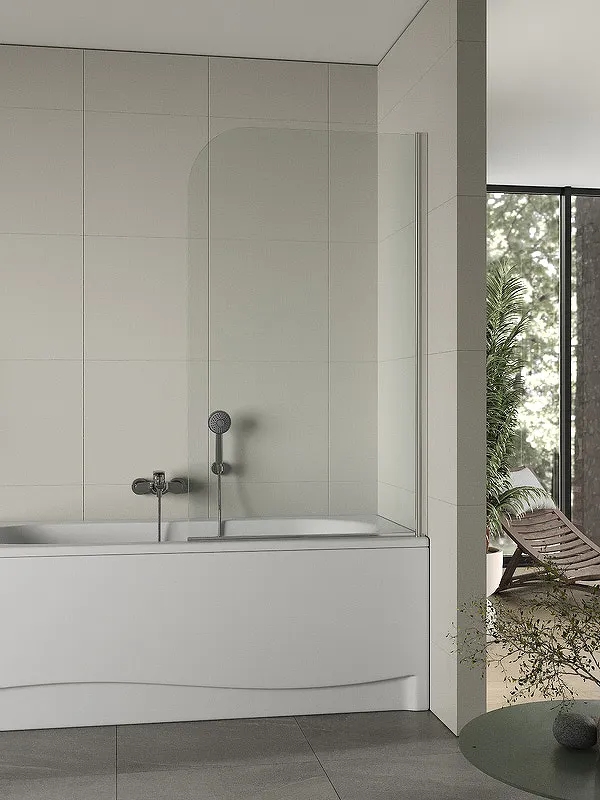 - Безопасность: Шторка на ванну изготовлена из закаленного прозрачного стекла толщиной 6 мм, что обеспечивает высокую прочность и устойчивость к повреждениям.
