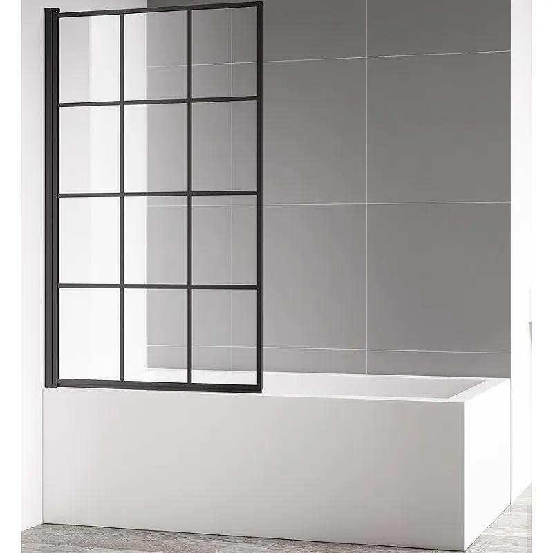 - Современный дизайн шторки на ванну: Черный матовый профиль и прозрачное стекло создают элегантный и актуальный облик.