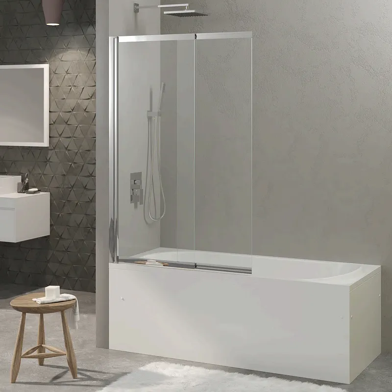 - Современный дизайн шторки на ванну: Сочетание прозрачного стекла и хромированного алюминия придаст вашей ванной комнате стильный и современный вид.
