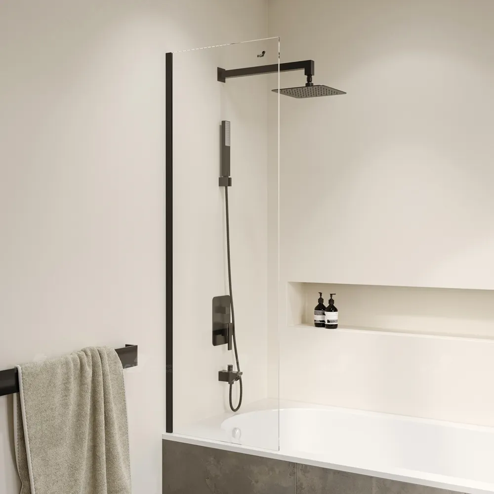 - Стильный дизайн: Прозрачное стекло и чёрный профиль делают шторку на ванну привлекательной деталью вашего интерьера.
