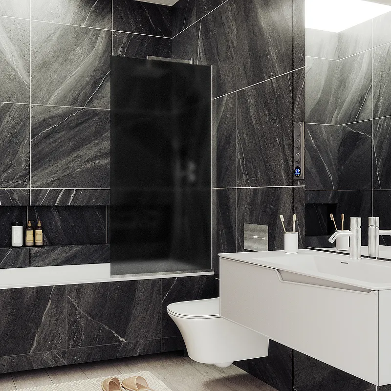 Шторка на ванну Maybah Glass MGV-251-5у 300x1400 в узком профиле.Характеристики: Цвет профиля: хром матовый. Материал профиля: анодированный алюминий. Вид профиля: узкий. Исполнение полотна шторки: графитовое матовое закаленное стекло, толщиной 8 мм. Размеры (ШхВ): 300х1400 мм. Конструкция шторки: неподвижная. Ориентация: универсальная. Монтаж: пристенный, на борт ванны. В комплекте поставки: Закаленное стекло, цвет Графит матовый, толщина 8 мм 1400х300 мм - 1 шт. Профиль П-образный, цвет Хром матовый - 2 шт. Комплект крепежа - 1 шт. Герметик силиконовый санитарный, бесцветный - 1 шт. Инструкция по монтажу - 1 шт.